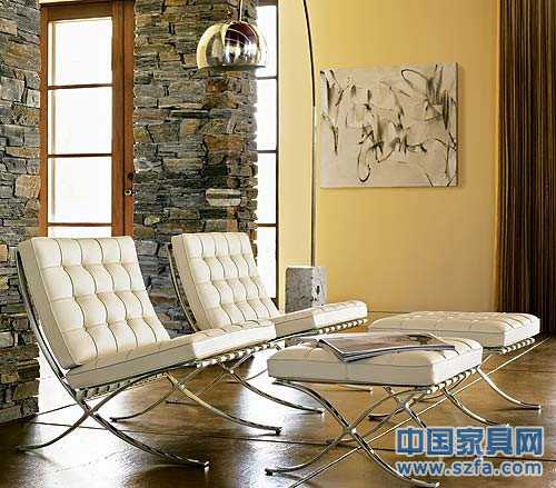 【現(xiàn)代時尚不銹鋼家具】巴塞羅那椅(Barcelona Chair)是由密斯.凡.德羅(Mies vander Rohe)在1929年為巴塞羅那世博會設計的偉大作品,開創(chuàng)了現(xiàn)代設計先河,并被德國作為禮物送給西班牙國王,這件作品被視為二十世紀最經(jīng)典的椅子流行至今。眩亮的不銹鋼和柔軟的皮革完美結合在一起,讓空間充滿了時代感。