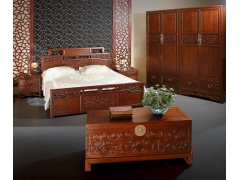 柿柿包廂床:床頭和床尾款式一樣,均采用羅鍋棖加矮老形式,床頭另按安置搭腦。雕花纏枝柿柿如意紋,寓意生活事事順心心想事成。造型高雅別致,空靈有度。
