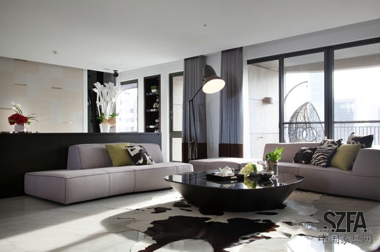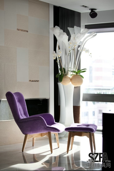 配飾上著重材料質(zhì)感,選用設(shè)計(jì)師品牌的落地?zé)襞c臺(tái)燈,黑鐵質(zhì)感搭配沙發(fā)真皮,陽臺(tái)上放置藤編的吊椅,夜晚可欣賞101夜景,整體帶點(diǎn)慵懶的元素材料與顏色搭配,結(jié)合上述設(shè)計(jì)理念與手法,為“品宅”。