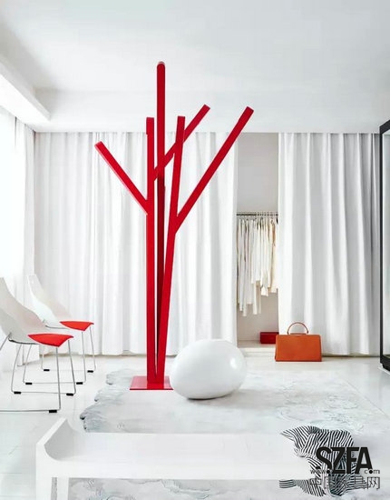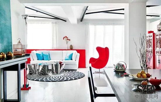 核心提示:馮勃認為“簡單、純粹并不意味著單調(diào),同色不同材質(zhì)的物品也能表現(xiàn)其豐富性。”她的家?guī)缀跏堑赇伒囊话妗白兿嘌堇[”:大面積白色打底的空間,紅色的家具、紅色的飾品穿插其間。