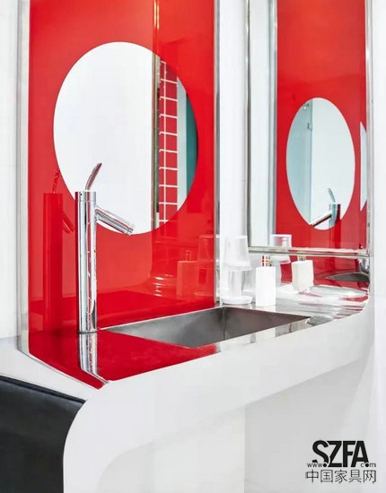 白色中的紅色點綴顯得利落大氣