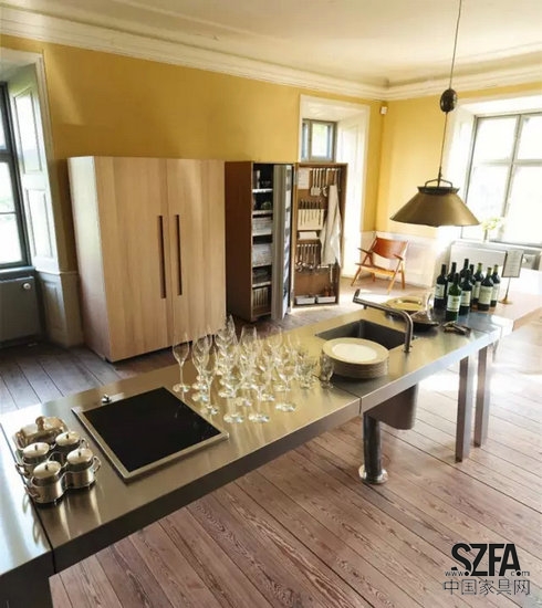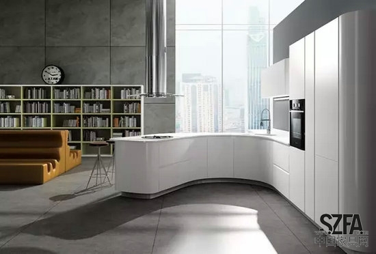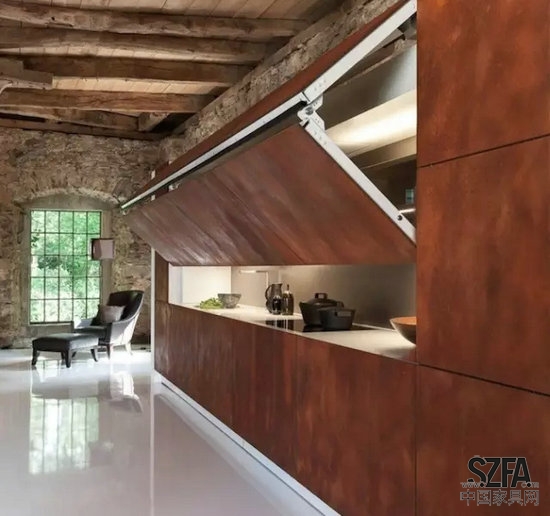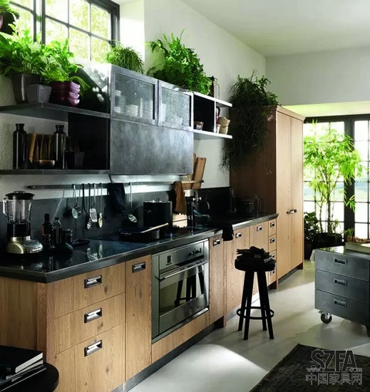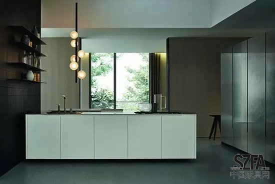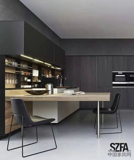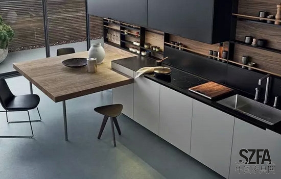 結構緊密整合的廚房設計,將工作組合臺、工具收納柜和廚房電器巧妙結合在一起,能創(chuàng)造一個真正親切沒有距離感的廚房天地。