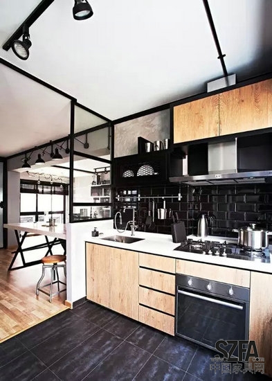 大面積的黑白對比讓不大的廚房空間充滿個性。