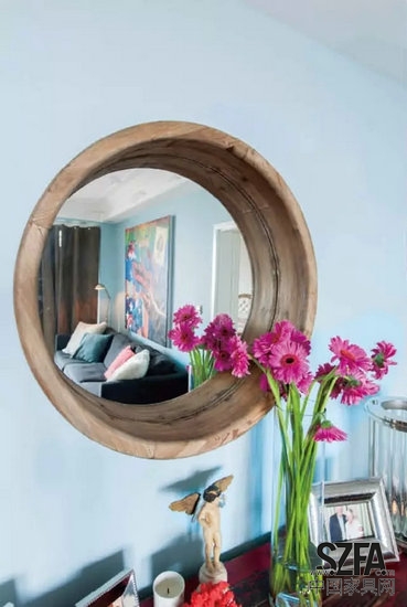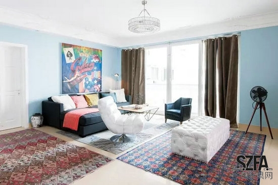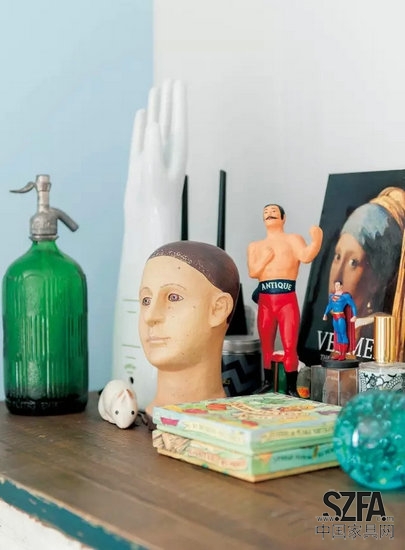 客廳的沙發(fā)、邊柜,擺件,自然都出自Casa,沙發(fā)座椅采用歐洲面料,上等比利時(shí)原麻、英國羊毛,難等可貴的是大部分原材料都屬于環(huán)保材質(zhì),例如茶幾,一張純手工完成的復(fù)古咖啡桌,使用老松木制作,家里的小朋友喜歡在上面隨手涂鴉。手工地毯是來自尼泊爾,由居住在當(dāng)?shù)氐膫鹘y(tǒng)藏族家庭采用古老技法和材料,以傳統(tǒng)手工編織法編織而成。材料采用百分之百的西藏羊毛,每英寸打一百結(jié),為該羊毛所能達(dá)到的最大密度,這是西藏和尼泊爾的工匠們一代一代地傳下這種技藝,就像一個(gè)傳奇。原本我們以為客廳里鋪三張地毯是為了防止小朋友跌倒碰傷,結(jié)果Capone先生說因?yàn)閷?shí)在是太愛,不知該怎么取舍,只能統(tǒng)統(tǒng)都鋪上。兩個(gè)邊柜上擺著許多小物件,不可或缺的家人照片、天使玩偶、超人公仔,還有一張戴珍珠耳環(huán)的少女畫像,經(jīng)典的現(xiàn)代主義與懷舊風(fēng)格完美混搭在一起。