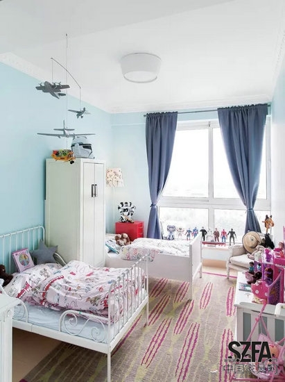 兩個(gè)孩子有自己的臥室,伸縮床真的是兒童床的首選,能根據(jù)寶貝們的身高做調(diào)整,十分實(shí)用的設(shè)計(jì)。窗臺上擺著一排英雄人物的玩偶,是哥哥還是爸爸共同的心頭好。大人的臥室十分簡潔,歐式的雙人床、床凳,床邊還設(shè)了一張小小的辦公桌,看來隨時(shí)隨地的工作是作為老板也難以避免的。