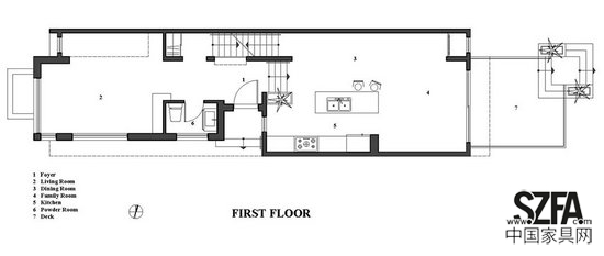 這個線性設(shè)計的靈感誕生于狹窄基地的挑戰(zhàn)。盡管測量起來也只有二十英尺寬,但是內(nèi)部空間卻給人以更加寬敞的感覺,只是為了達(dá)到協(xié)調(diào)線形設(shè)計的設(shè)計意圖,并且創(chuàng)造性的開發(fā)了開放空間。這個設(shè)計的結(jié)果就是營造了一種寬敞的空間,自然光線的進(jìn)入絲毫不受阻礙。有意的定向貫穿房間來創(chuàng)造了一個可以產(chǎn)生一個有活力生存空間的光明。