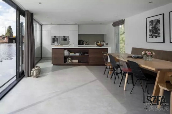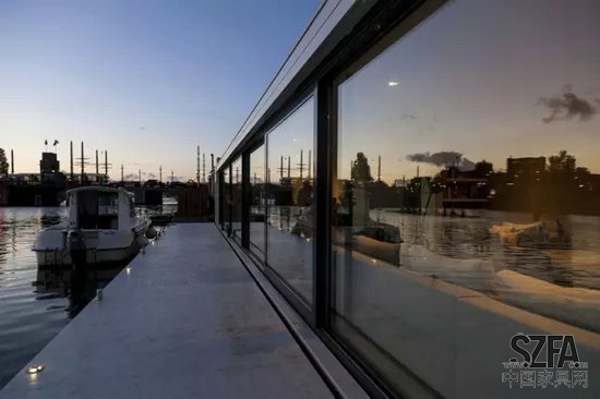 +31建筑事務(wù)所在阿姆斯特丹的阿姆斯特爾河畔設(shè)計(jì)完成了一座水上別墅。臨河住宅的數(shù)目日益增多,不僅是因?yàn)槠涞锰飒?dú)厚的地理位置,更因?yàn)檫@樣做能夠有效保護(hù)土地,抵抗洪水。由于水上別墅能與碼頭靈活銜接,其浮力結(jié)構(gòu)可以根據(jù)潮汐的改變來調(diào)整其在水中上升的高度。