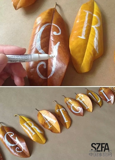 其實,吊旗也可以DIY?,F(xiàn)在正是落葉繽紛之時,走在路上隨處可見散落在地上的落葉。如果把它們利用起來,稍加改造,就可以做出美好的感恩節(jié)橫幅。