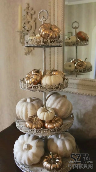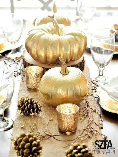 可以嘗試用白色噴漆噴涂那些裝飾南瓜,這獨一無二的飾品將給你的餐桌增添幾分恬淡優(yōu)雅。
