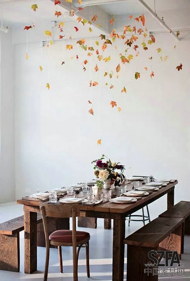 楓葉上寫上賓客的名字放在餐盤里,都很應(yīng)景。