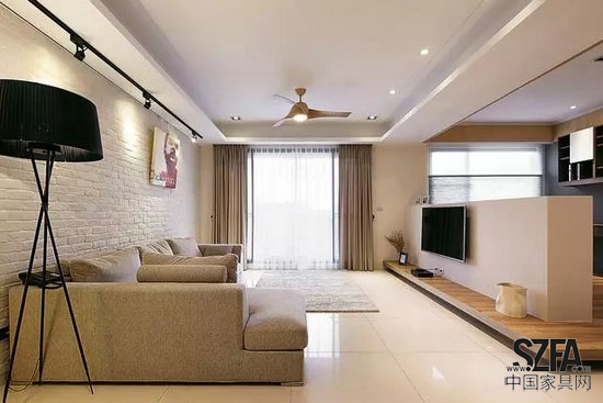 核心提示:客廳沙發(fā)背景墻選擇了白色的仿古磚,整個(gè)空間看起來很有層次感??蛷d整體顏色比較素凈,木色的沙發(fā),白色的地磚,白色的地毯,整體干凈柔和。