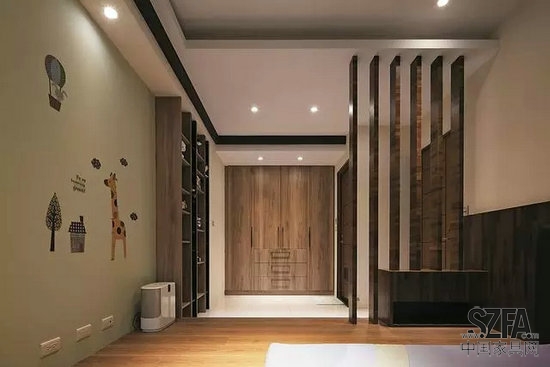 簡(jiǎn)單中帶有一絲奢華,墻壁內(nèi)嵌的木質(zhì)衣柜實(shí)用又有美觀。