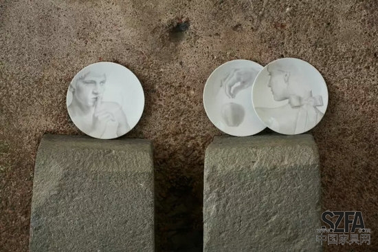 Jules Julien為TH Manufacture專屬設(shè)計(jì)了這樣一個(gè)“白色系列”。這個(gè)系列的五只盤子每只都用一幅白描的畫作為裝飾,突顯了瓷器的精美和人性觸感。
