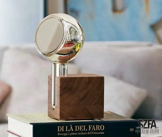 設(shè)計(jì)師Maarten Baptist給他的手持鏡命名為Yve,這個(gè)女性化的物件全身都可以當(dāng)做鏡子,銀鏡散發(fā)出一種溫和而又亮眼的光彩?;窍鹉净蚝夷静牧希且粋€(gè)實(shí)心砌塊,用來支撐鏡子。