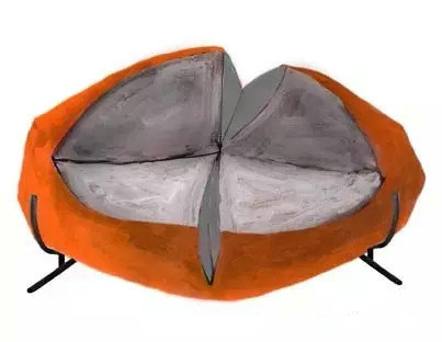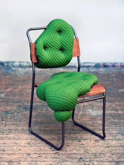 Charlotte坦言,并不是所有的椅子都能夠激發(fā)她的靈感,它們得有一些特殊的地方,有時(shí)候她會(huì)在路邊發(fā)現(xiàn)被丟棄的椅子,也許已經(jīng)破舊不堪,但仍留有舊工藝的非凡手工痕跡,吸引著她將復(fù)古椅子們帶回工作室。Charlotte對(duì)“撿到”的椅子進(jìn)行細(xì)微的觀察與反復(fù)素描。素描的過(guò)程十分重要,從椅子各個(gè)角度的審視素描中,她畫(huà)出椅子的形狀,更加精準(zhǔn)地找出椅子的新生可能性,繼而用白棉布?jí)|襯物進(jìn)行基礎(chǔ)打樣裁剪,選擇不同材質(zhì)的布料做最后的修飾,完成不規(guī)則的奇異椅子,契合人體工程學(xué)的同時(shí)舒適得仿佛成為身體的外延。