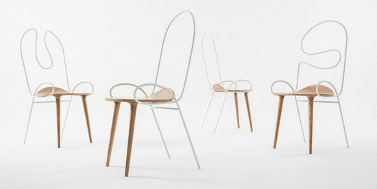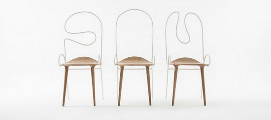 家具與他者的關(guān)系,是物體與身體、物體與周遭環(huán)境的關(guān)系;家具本身,則是由上述關(guān)系投射到物與物、材料與材料的獨特的連接關(guān)系。Sylph椅有意設(shè)定了兩個材料,一個工業(yè)化的可以任意彎曲的細鋼管和一個需要手工細作的木質(zhì)材料,這兩個材料將被連接,并以各自的方式(與身體的關(guān)系和材料自身特性)成為椅子的一部分。
