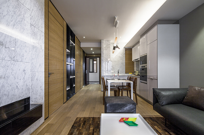 當(dāng)小戶型遇到高級灰,這種有范兒的調(diào)調(diào)完全沿襲了方磊個(gè)性時(shí)尚的設(shè)計(jì)DNA。