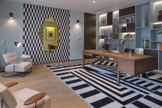 為了讓藝術(shù)在空間中得到更好的詮釋,這些藝術(shù)元素不僅僅反映在墻面,地面及天花上,設(shè)計(jì)團(tuán)隊(duì)親自為該項(xiàng)目設(shè)計(jì)定制家具以及如地毯等飾品,使裝飾藝術(shù)呈現(xiàn)出更好的效果。我們也相信,設(shè)計(jì)一個(gè)空間,不僅僅是讓空間本身充滿想象,同時(shí)它應(yīng)該讓周遭的人獲得跟多靈感。如此一間集文化及藝術(shù)于一身的雅致幽所,必定吸引對(duì)生活有著獨(dú)到品味的人,他們可能也會(huì)與設(shè)計(jì)師一樣喜歡欣賞Koloman Moser 的畫(huà)作,亦或是像Kay Sage,F(xiàn)rancis Picabia 或者Ettore Sottasaa這些藝術(shù)巨匠。