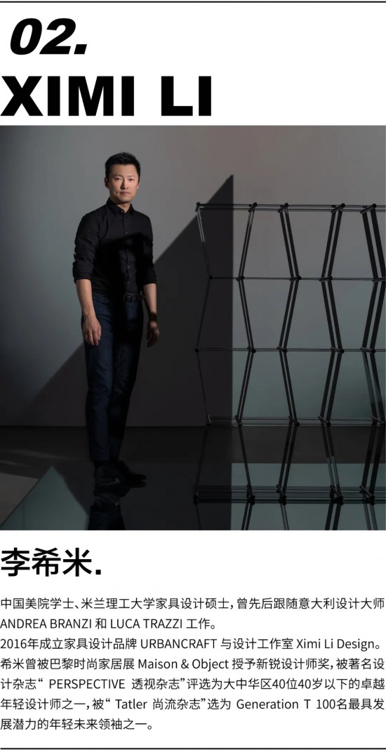 L:今年深圳時尚家居設(shè)計周一共有 14 個展館,其中 6 個是設(shè)計導(dǎo)向的主題館。當(dāng)深圳時尚家居設(shè)計周向我發(fā)出 11 號館的策展邀請時,雙方的想法十分契合。我在意大利學(xué)習(xí)工作多年,2016年開始經(jīng)營自己的家具品牌 URBANCRAFT,并以設(shè)計工作室 Ximi Li Design 開啟了與中國原創(chuàng)家具品牌的合作。從海外到國內(nèi),有幸經(jīng)歷了不同的審美與文化體系,同時也經(jīng)歷了兩國行業(yè)的多樣性。中國的現(xiàn)代家具設(shè)計行業(yè)才剛剛開始,高速演化的社會進(jìn)程中,市場也隨之快速變化。展覽方身處行業(yè)里,同樣深深理解行業(yè)處于過渡期的痛點,從他們的角度也更能理解許多制造商、品牌方對未來的考量。因此,我們希望所策劃的設(shè)計坐標(biāo)概念展,能在某種意義上有帶動、引領(lǐng)的作用,希望這是一個有國際視野的展覽,可以被國內(nèi)摸索中的品牌所借鑒。