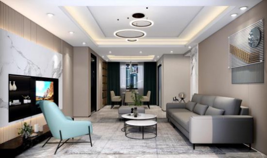 鄰近色系打造出空間的靜雅格調(diào),多層方形吊頂加設(shè)弧形創(chuàng)意燈飾,暖光鋪陳,如一層溫柔濾鏡。CBD家居·白金 | BS138沙發(fā),高級(jí)灰色如低調(diào)王者,靜立一隅,從容大方;方正模塊構(gòu)型,內(nèi)里柔軟填充,舒適坐感直抵人心。
