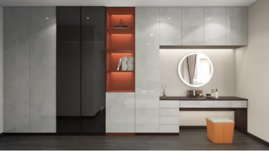 定制墻柜集衣柜與梳妝臺于一體,在實用性的基礎上升級整體美觀度,回歸生活本質(zhì),演繹現(xiàn)代設計“以人為本”的核心。藏露得宜的儲物柜,賦予生活秩序感,張弛有度。