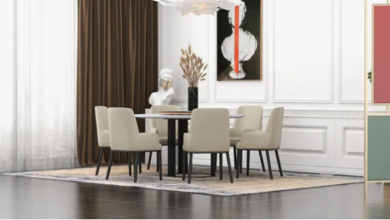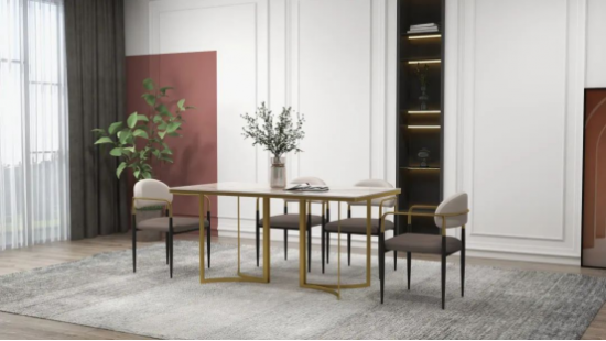 搭配拉絲淺玫瑰金亮光桌腳,點綴出空間氣質;桌腳造型別具幾何對稱之美,承重更穩(wěn)固。