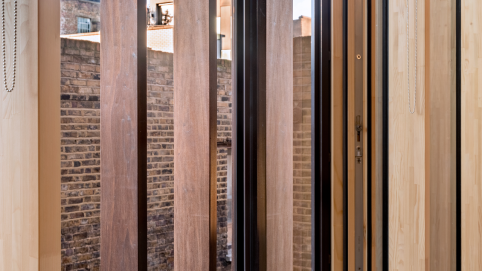 “熱處理技術(shù)無需使用任何化學物質(zhì),只是把木頭進行烘烤。一旦木材干燥,就可以將其放入高溫中處理。” Venables解釋道。這個過程通過結(jié)晶形成層來增強木材的穩(wěn)定性和耐用性,并防止木材收縮和膨脹。“通常在熱處理過程中,加熱到180攝氏度以上,木材的水分含量會降低到4-6%左右,”Venables進一步解釋說:“這樣可以防止真菌和昆蟲腐爛,因為烘烤會密封木材,使其不易彎曲、開裂或移動。考慮到當時還沒有現(xiàn)成的數(shù)據(jù),項目期間AHEC進行了一些防火測試,以證明熱處理鵝掌楸木具有防火性能,可以為多層建筑提供足夠的保護。”